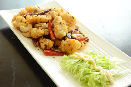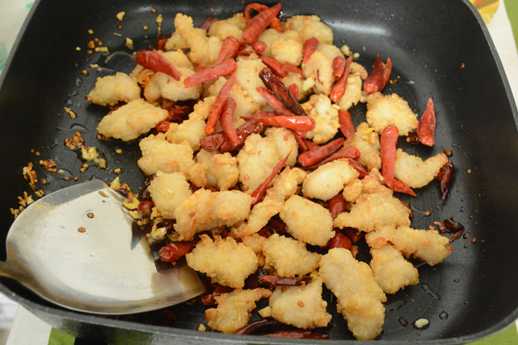 - 材料: 圣农盐酥鸡1包 干红辣椒15个 大蒜瓣3个 生姜4片 腰果20个 花椒3茶匙 食用油2茶匙 步骤: 干红辣椒切丁,蒜瓣、生姜切末 盐酥鸡炸好备用 将蒜蓉、姜末倒入中火油锅煸香,然后放入辣椒丁、花椒 放入圣农盐酥鸡、腰果,翻炒片刻即可出锅