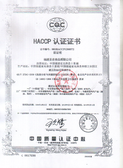 HACCP认证证书