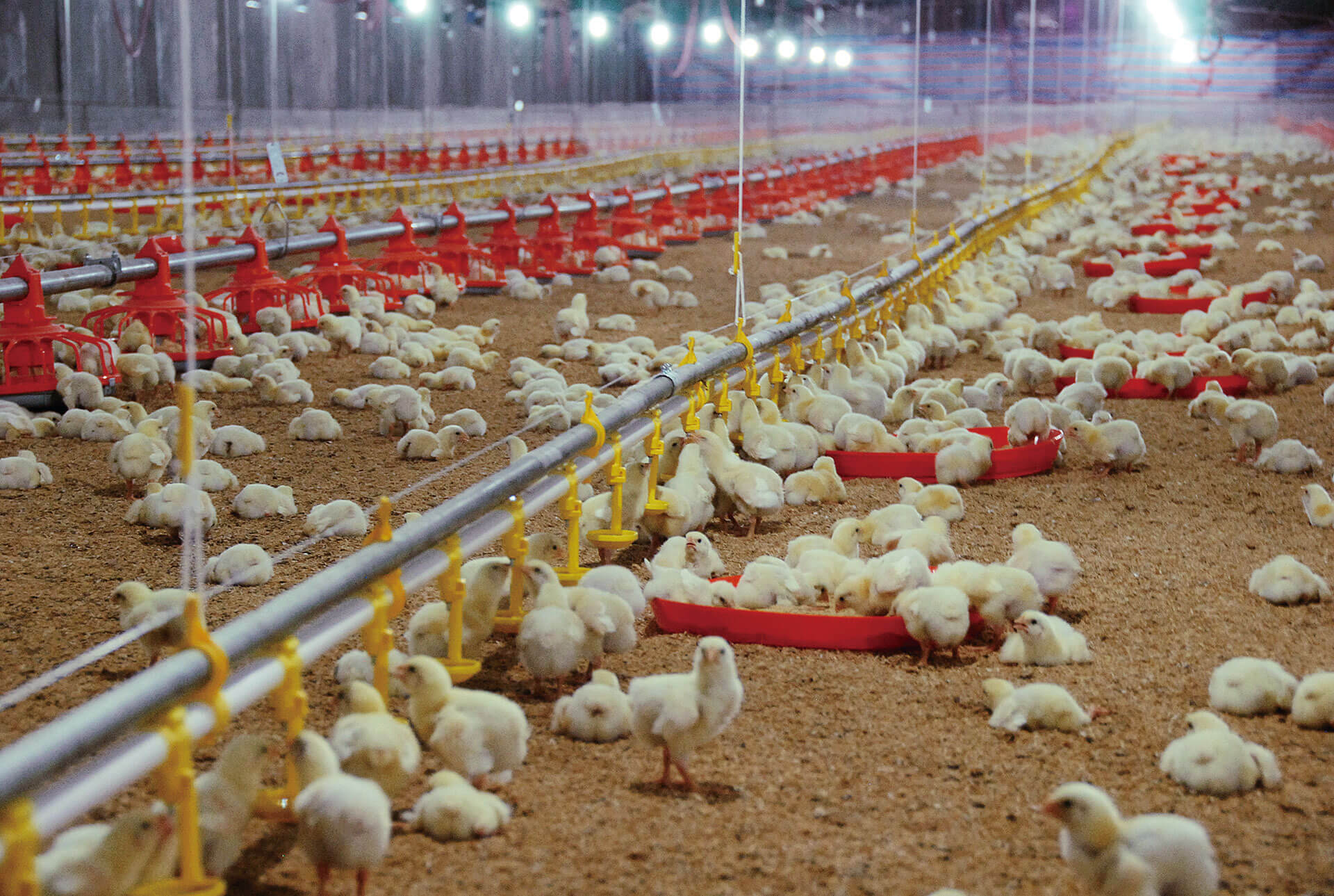 肉鸡养殖数字化环控大厅 鸡舍内部配置了从欧美国家进口的先进自动设备,实现了鸡舍环境控制自动化,饲养封闭化,确保了种/肉鸡的生产安全和产品质量
