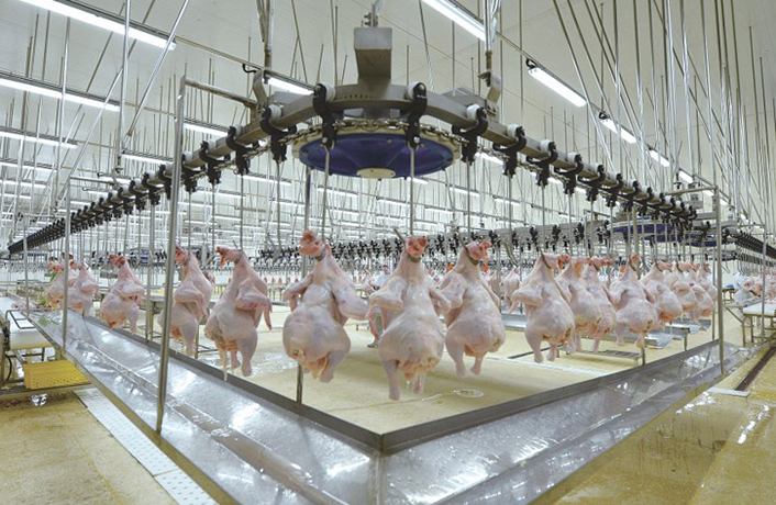 圣农引进欧洲加工设备,自动切割转挂、自动掏膛、清洗系统等,提高了生产效率和产品卫生水平;自动称重分级系统可针对鸡肉分割产品的重量、大小自动称重并分级入箱,提高肉鸡加工产量和标准化水平